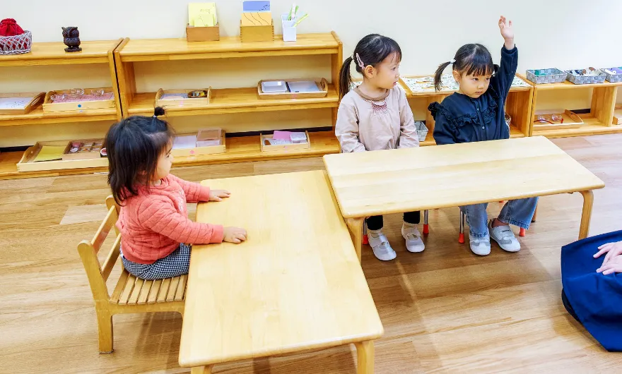 After taking personal development and participation in Infant Community activities into consideration, and once reaching 3 years old, the child will be ready to move up to the Primary Community.